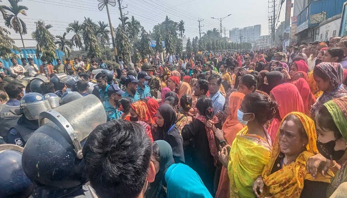 অনলাইন ডেক্স: চট্টগ্রাম নগরের বায়েজিদ বোস্তামি পলিটেকনিক মোড় এলাকায় বকেয়া বেতনের দাবিতে সড়ক অবরোধ করেছেন পোশাক কারখানার শ্রমিকরা। সোমবার (৩ জানুয়ারি) সকালে আনোয়ারা ড্রেস মেকার্স লিমিটেড ও ফ্রাংক অ্যাপারেলস লিমিটেডের শ্রমিকরা এ কর্মসূচি পালন করেন। শিল্প পুলিশের উপ-পুলিশ পরিদর্শক মো. কায়সার হামিদ ঘটনাস্থল থেকে বিষয়টি নিশ্চিত করেছেন। শ্রমিকদের দাবি, গত বছরের ডিসেম্বর মাসের বকেয়া বেতন …